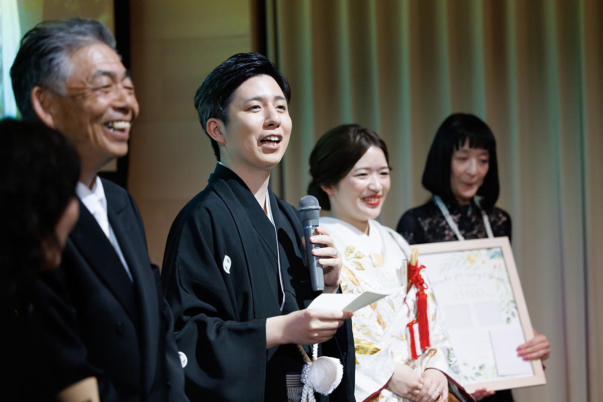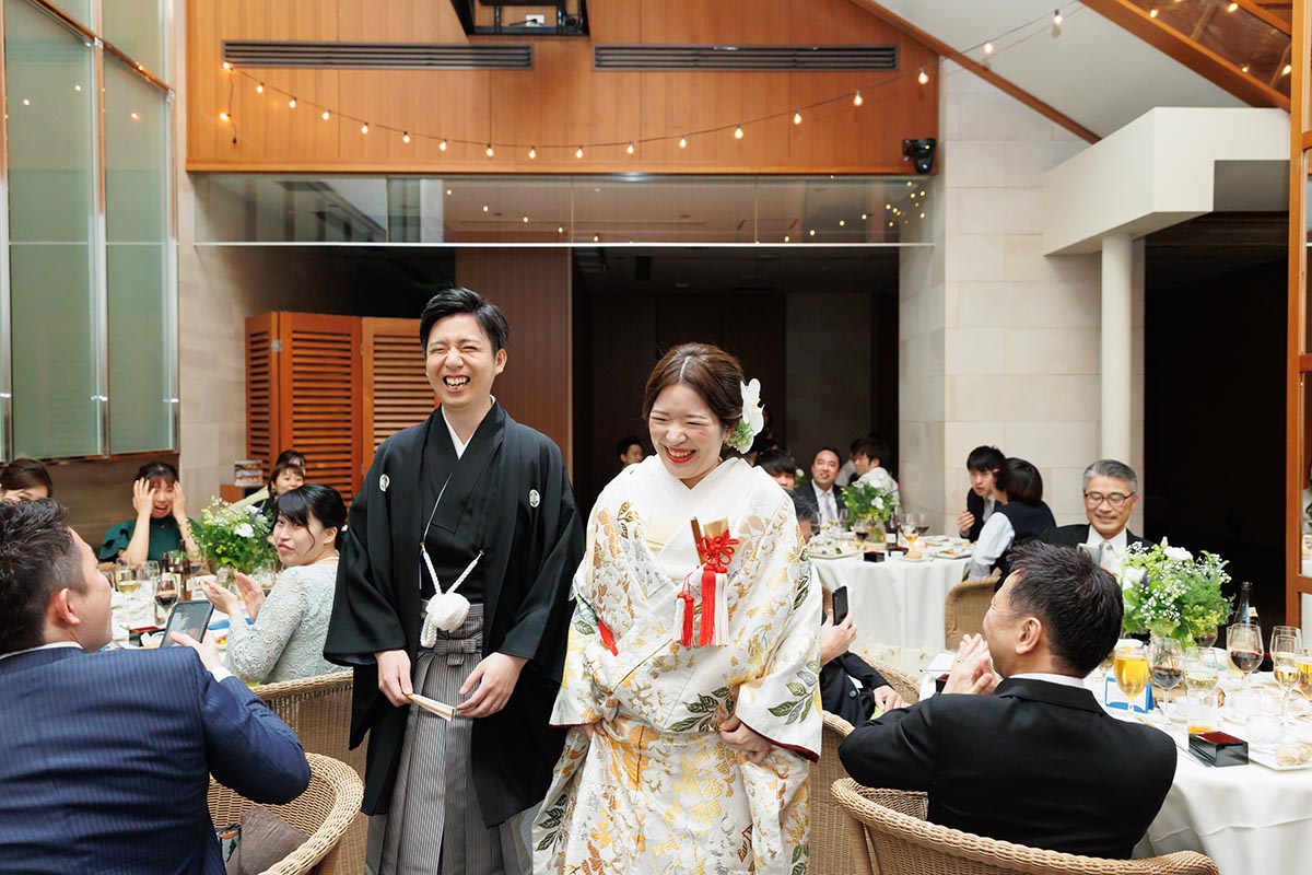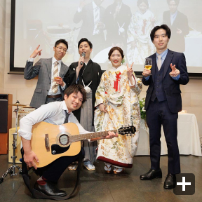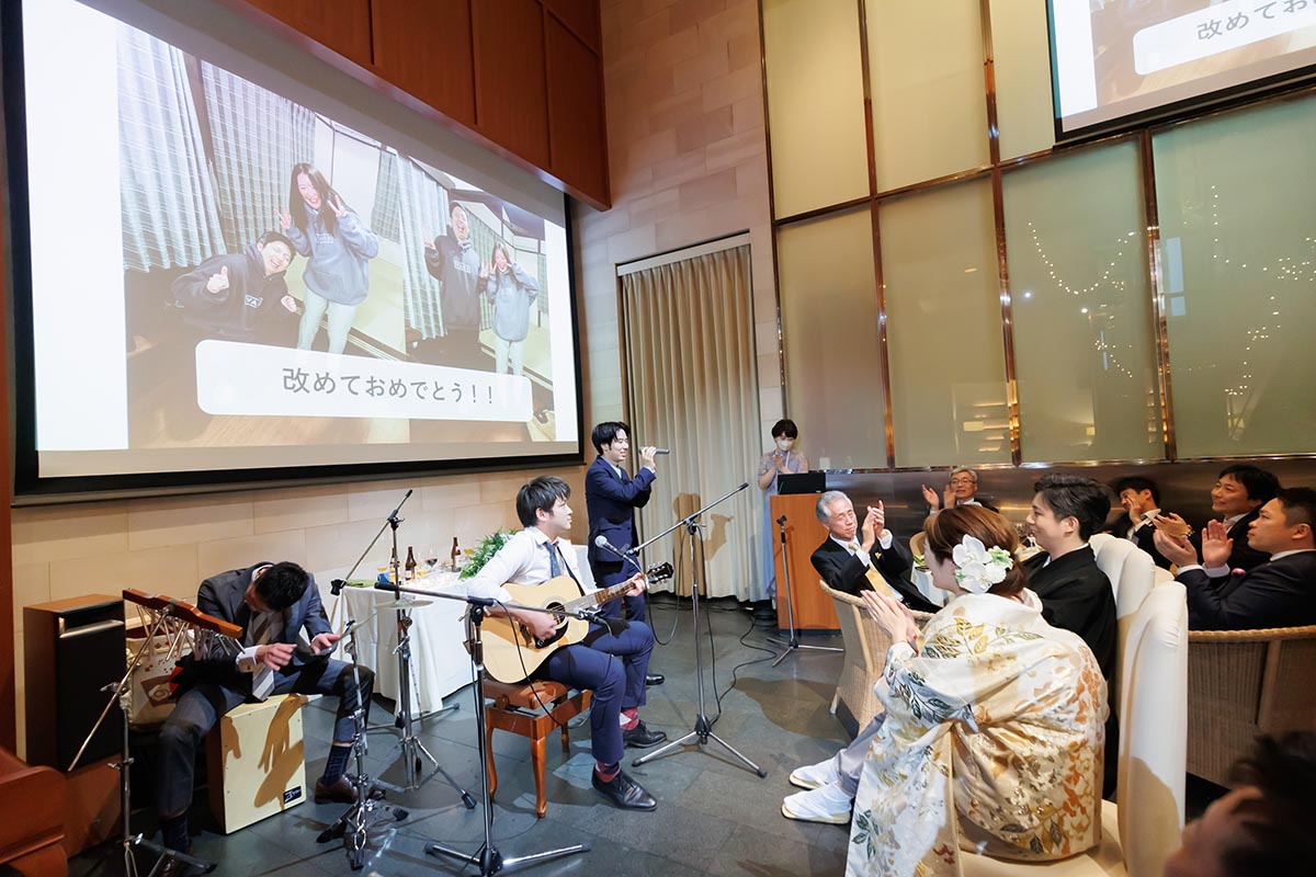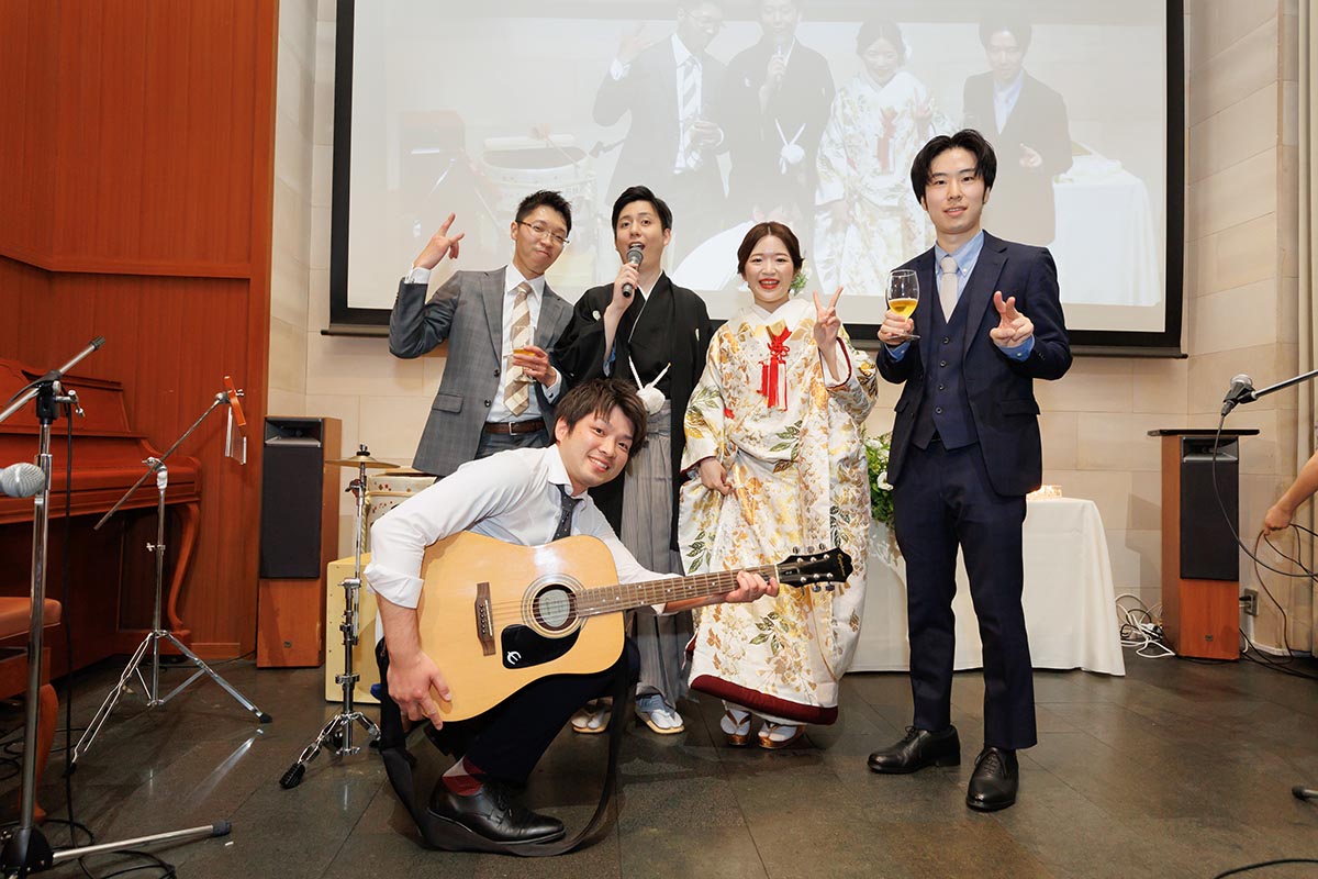お色直しは色打ち掛けを考えていたためイメージにぴったり!と思い盛大に鏡開きをさせてもらいましたが、ゲストもお酒が好きな方が多かったため皆さんに楽しんでもらえて良かったです。また、余興は学生時代の軽音楽サークルの友人にお願いしたのですが、音出しに関するNGが基本的にない会場と伺って安心してお願いすることができたのも嬉しかったポイントです。
