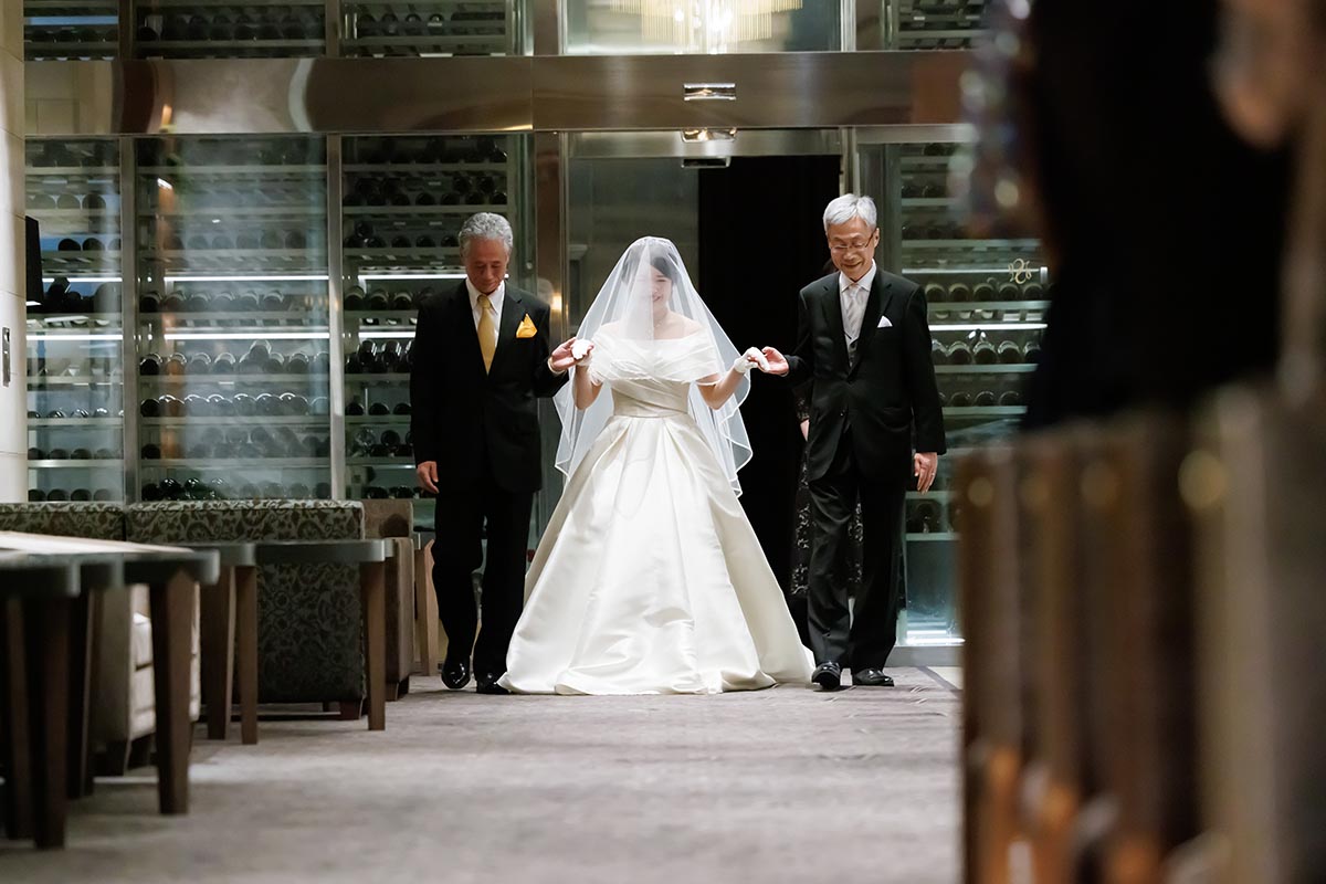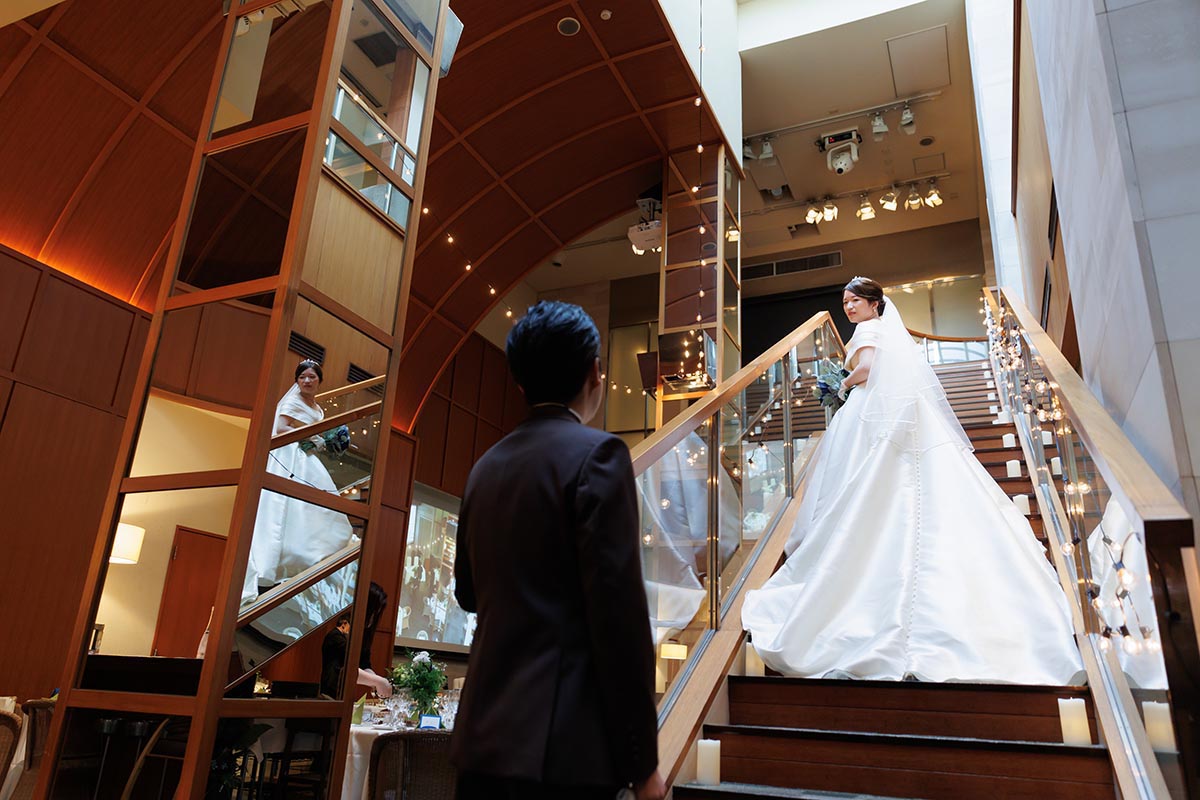 招待したいゲストが50名ほどで、神楽坂にこだわると候補となる会場は当初から限られていたのですが、1件目に見学したこちらの式場が会場の雰囲気もお食事も大満足で即決しました!神楽坂という場所も、印象的な会場も、これまで参加した結婚式とは良い意味で違っていてゲストの皆さんにも好評で嬉しかったです。