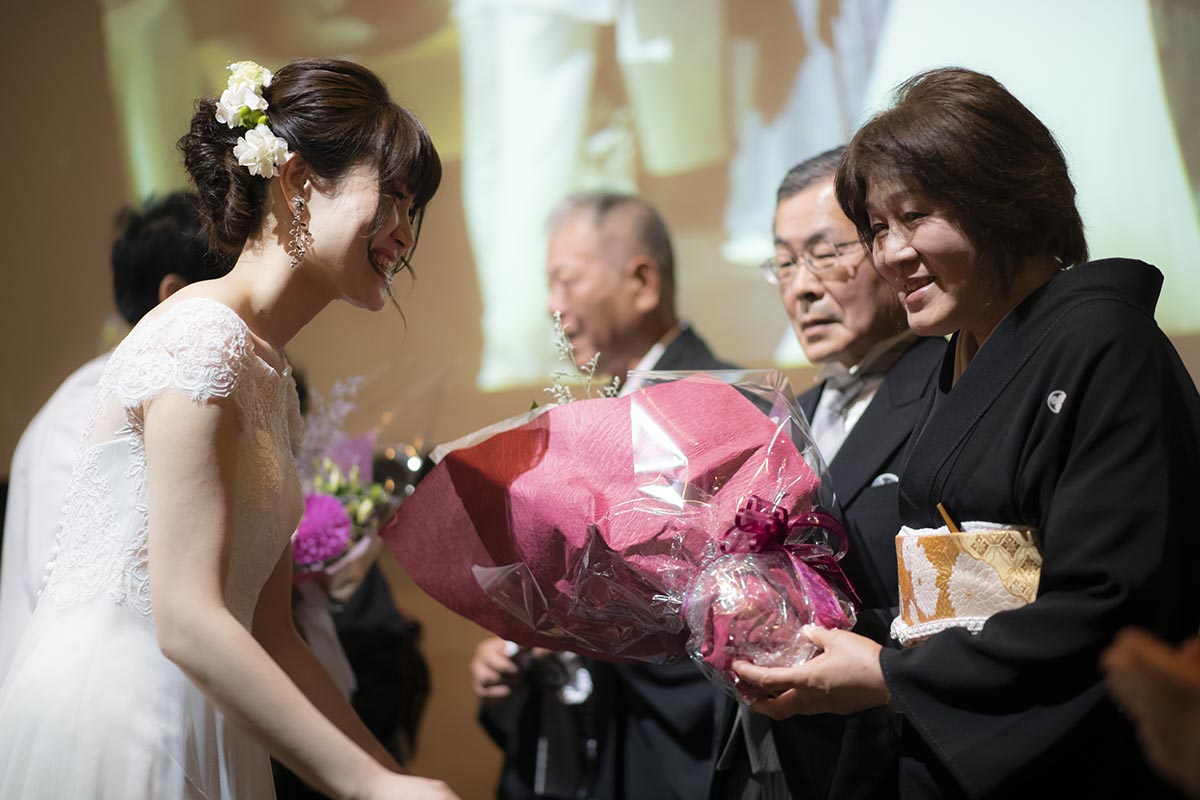 最初相談にお伺いした時から本番当日まで、プランナーや司会の方、スタッフの皆さんがこちらのリクエストに対して常に耳を傾け、やりたいことが実現するよういつも親身になって助けてくださり、とてもありがたかったです。おかげさまで、期待以上に笑いあり涙ありの素晴らしい披露宴になりました。