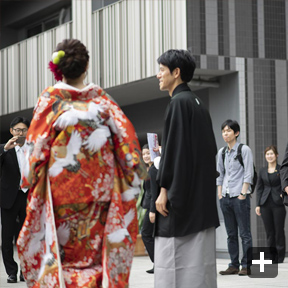 まず、結婚式場は、二人に所縁のある神楽坂にある「赤城神社」で挙げたいという希望がありました。次に、披露宴会場は、招待客数を100名と想定し、何度か見学や試食をして考えた結果、会場やスタッフの皆さんの温かな雰囲気、料理が気に入った「ラリアンス」にしました