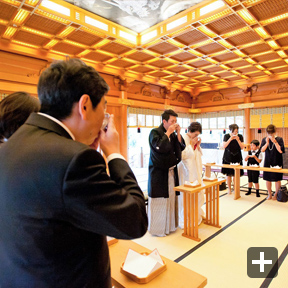 すでに入籍しており、もともと大々的な結婚式、披露宴は行わず、身内だけで食事会をしたいと思っていました。いろいろ調べていくうちに少人数でも結婚式をして、せっかくなら両親と花嫁衣装を着て、写真を残したいと思うようになりました。以前から、和装がとても好きだったこともあり、神社挙式なら和装が映え、なおかつ両親の世代には伝統ある結婚式が喜んでもらえるかと思い、さまざまな神社と提携し、少人数でも食事会ができるラリアンスのブライダルフェアに参加しました。