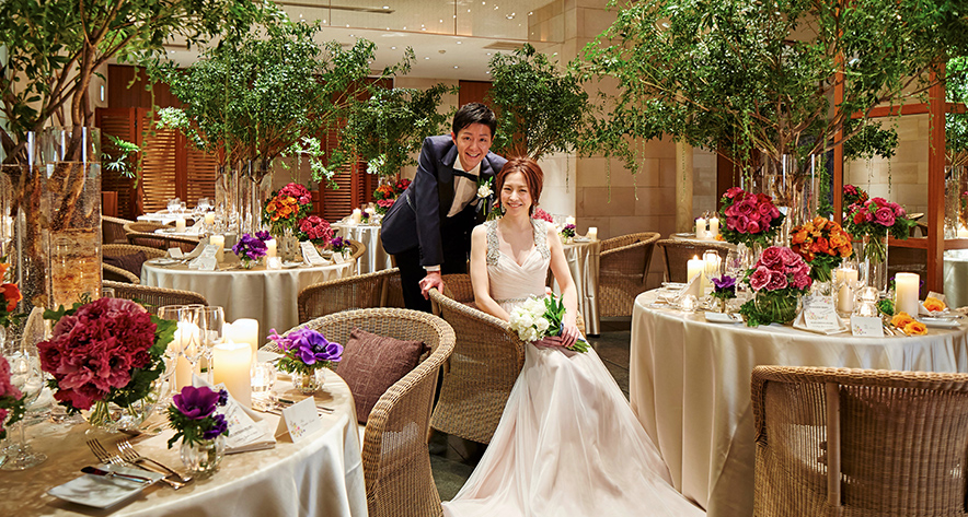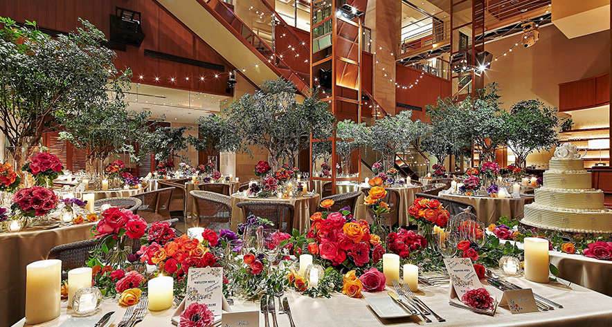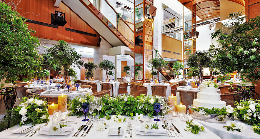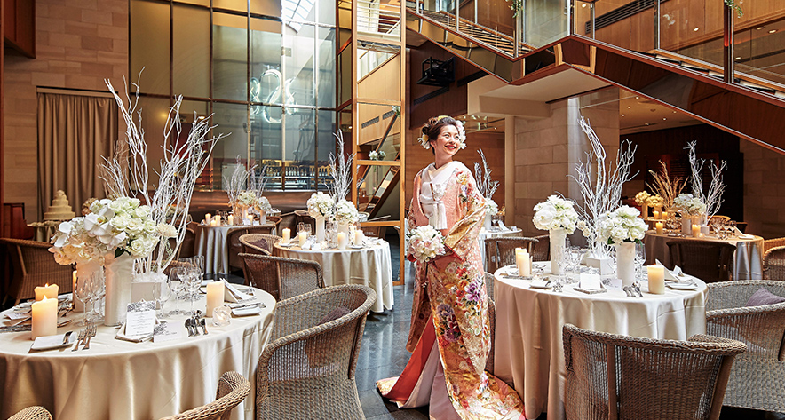 当日はもちろん全館貸切、350坪のゆとりある会場全体を心ゆくまで"ご自分たちのスタイル"へ。