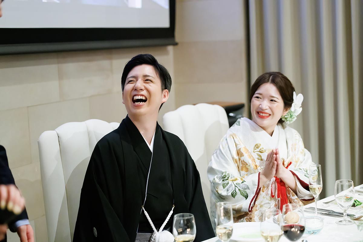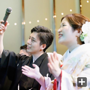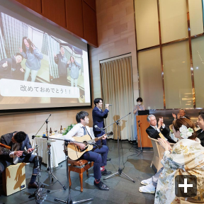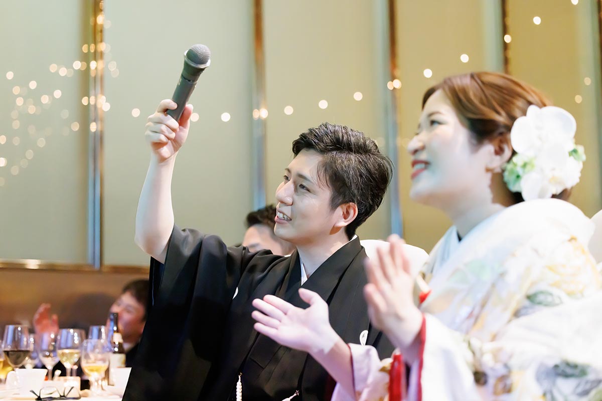 お色直しは色打ち掛けを考えていたためイメージにぴったり!と思い盛大に鏡開きをさせてもらいましたが、ゲストもお酒が好きな方が多かったため皆さんに楽しんでもらえて良かったです。また、余興は学生時代の軽音楽サークルの友人にお願いしたのですが、音出しに関するNGが基本的にない会場と伺って安心してお願いすることができたのも嬉しかったポイントです。