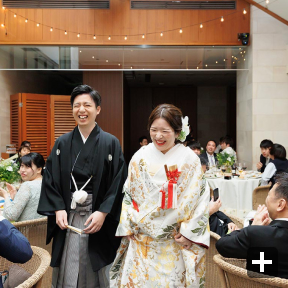 招待したいゲストが50名ほどで、神楽坂にこだわると候補となる会場は当初から限られていたのですが、1件目に見学したこちらの式場が会場の雰囲気もお食事も大満足で即決しました!神楽坂という場所も、印象的な会場も、これまで参加した結婚式とは良い意味で違っていてゲストの皆さんにも好評で嬉しかったです。