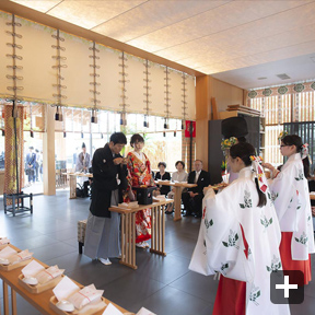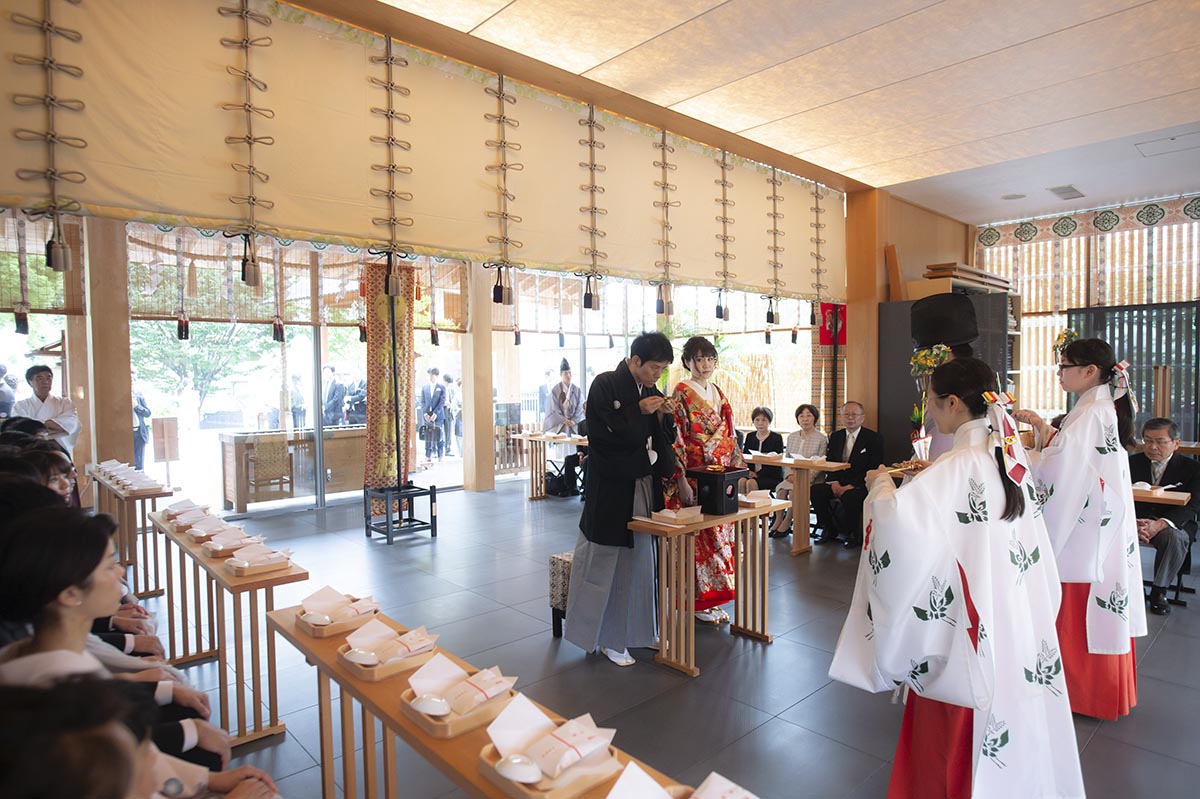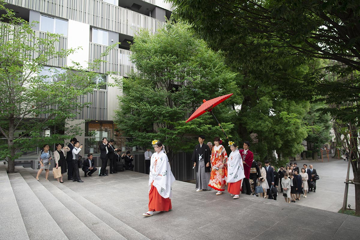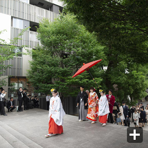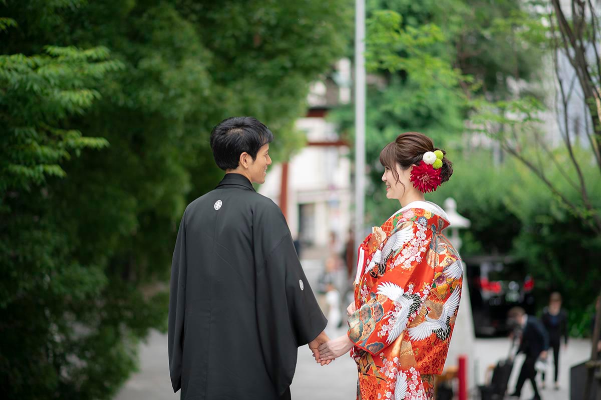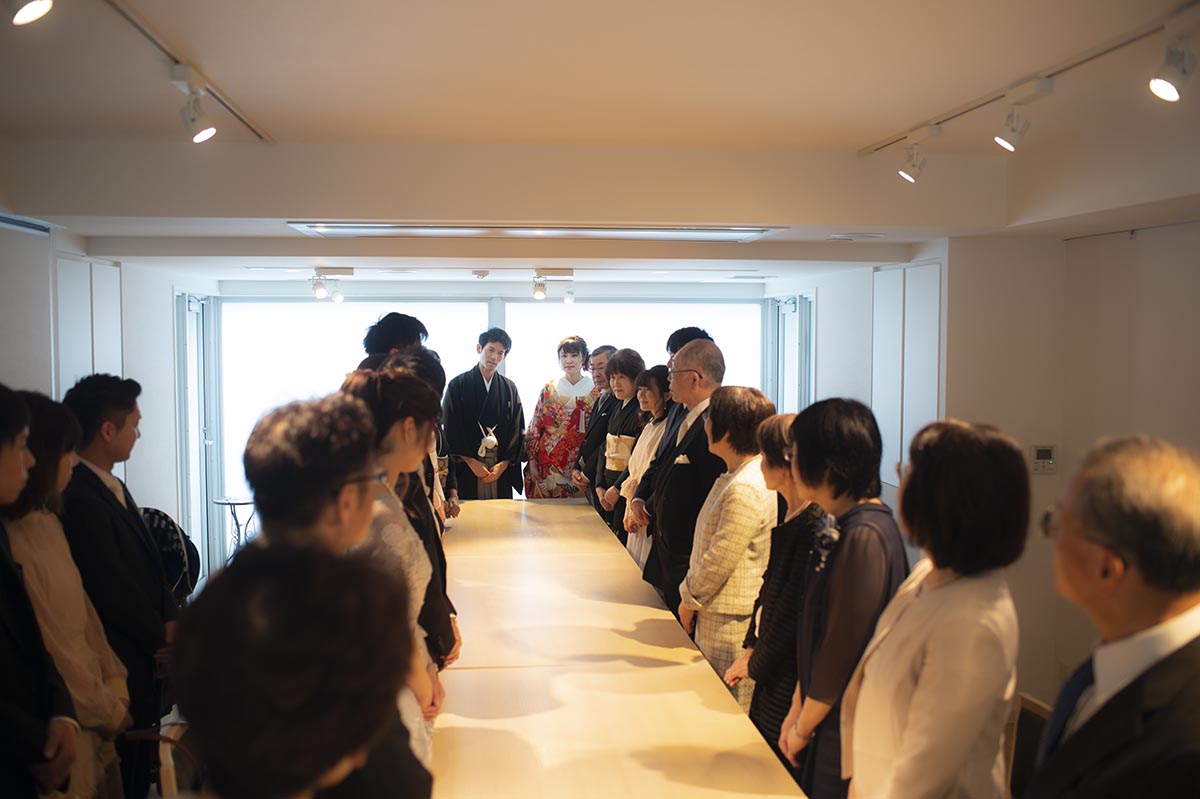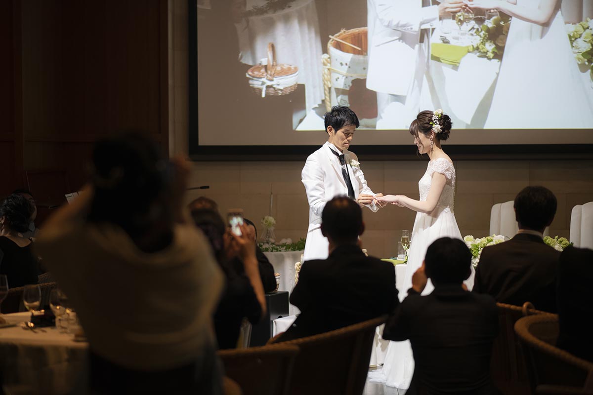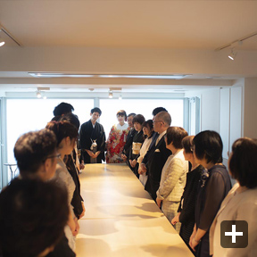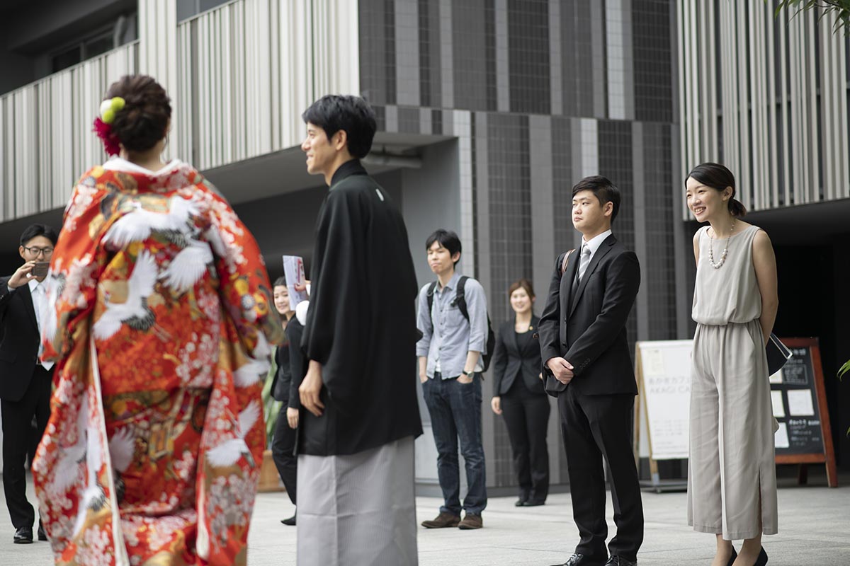 まず、結婚式場は、二人に所縁のある神楽坂にある「赤城神社」で挙げたいという希望がありました。次に、披露宴会場は、招待客数を100名と想定し、何度か見学や試食をして考えた結果、会場やスタッフの皆さんの温かな雰囲気、料理が気に入った「ラリアンス」にしました