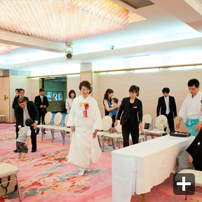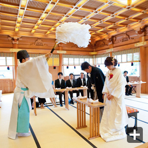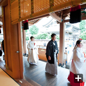 すでに入籍しており、もともと大々的な結婚式、披露宴は行わず、身内だけで食事会をしたいと思っていました。いろいろ調べていくうちに少人数でも結婚式をして、せっかくなら両親と花嫁衣装を着て、写真を残したいと思うようになりました。以前から、和装がとても好きだったこともあり、神社挙式なら和装が映え、なおかつ両親の世代には伝統ある結婚式が喜んでもらえるかと思い、さまざまな神社と提携し、少人数でも食事会ができるラリアンスのブライダルフェアに参加しました。
