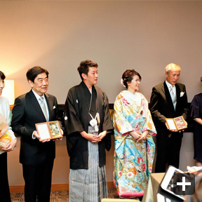 少人数での披露宴でしたが、ケーキ入刀、プロフィールムービーの上映なども行いました。ウエディングケーキ入刀はやりたかったことのうちの一つだったので、プランナーの林田さんにケーキのイメージを伝え、和婚がテーマだったので、飴細工を使って水引を作っていただくことになりました。わたしのつたないイメージを一生懸命形にしてくださり、本当にありがとうございました!おかげで素敵なケーキでファーストバイトができました☆